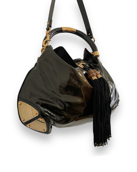 Sac Gucci Indy en cuir et bambou vernis