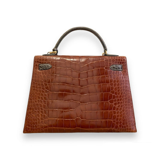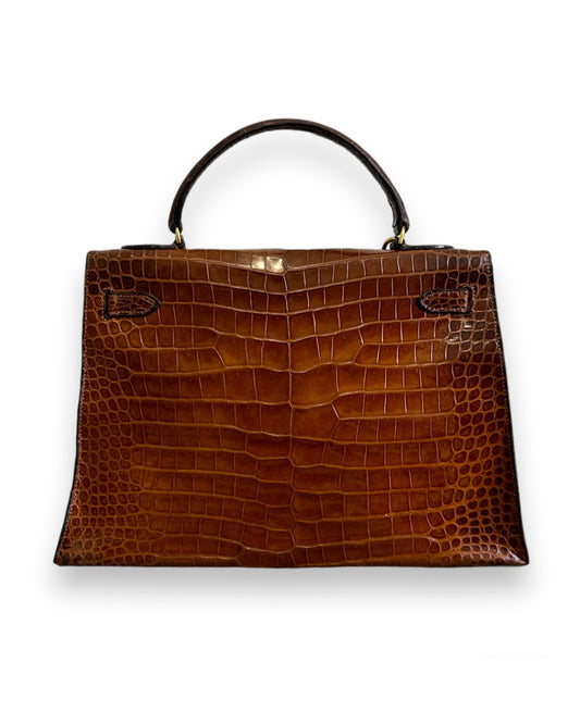 Sac Hermès Kelly 32 crocodile porosus marron