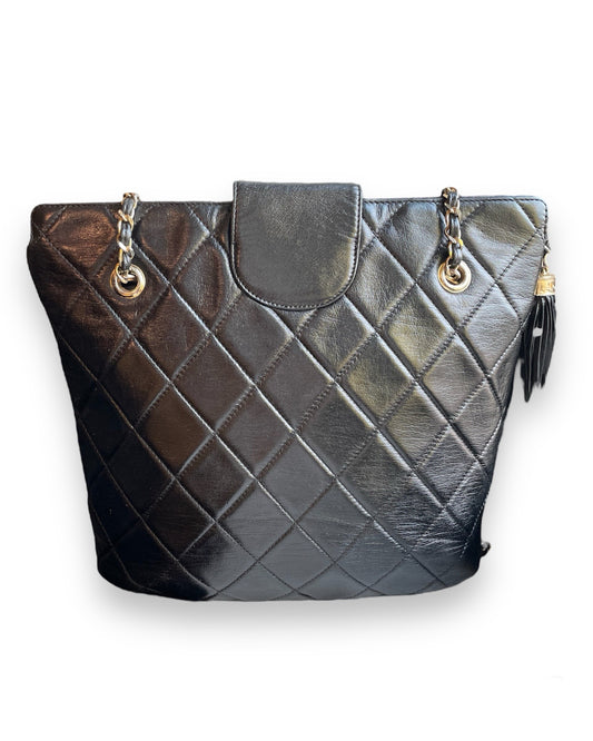 Sac Chanel shopping noir vintage matelassé