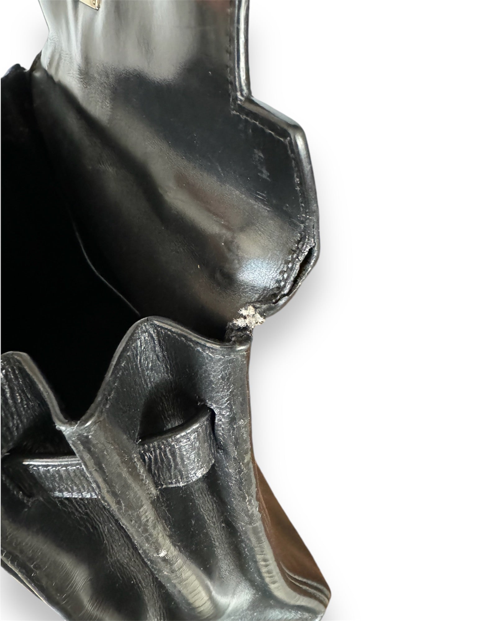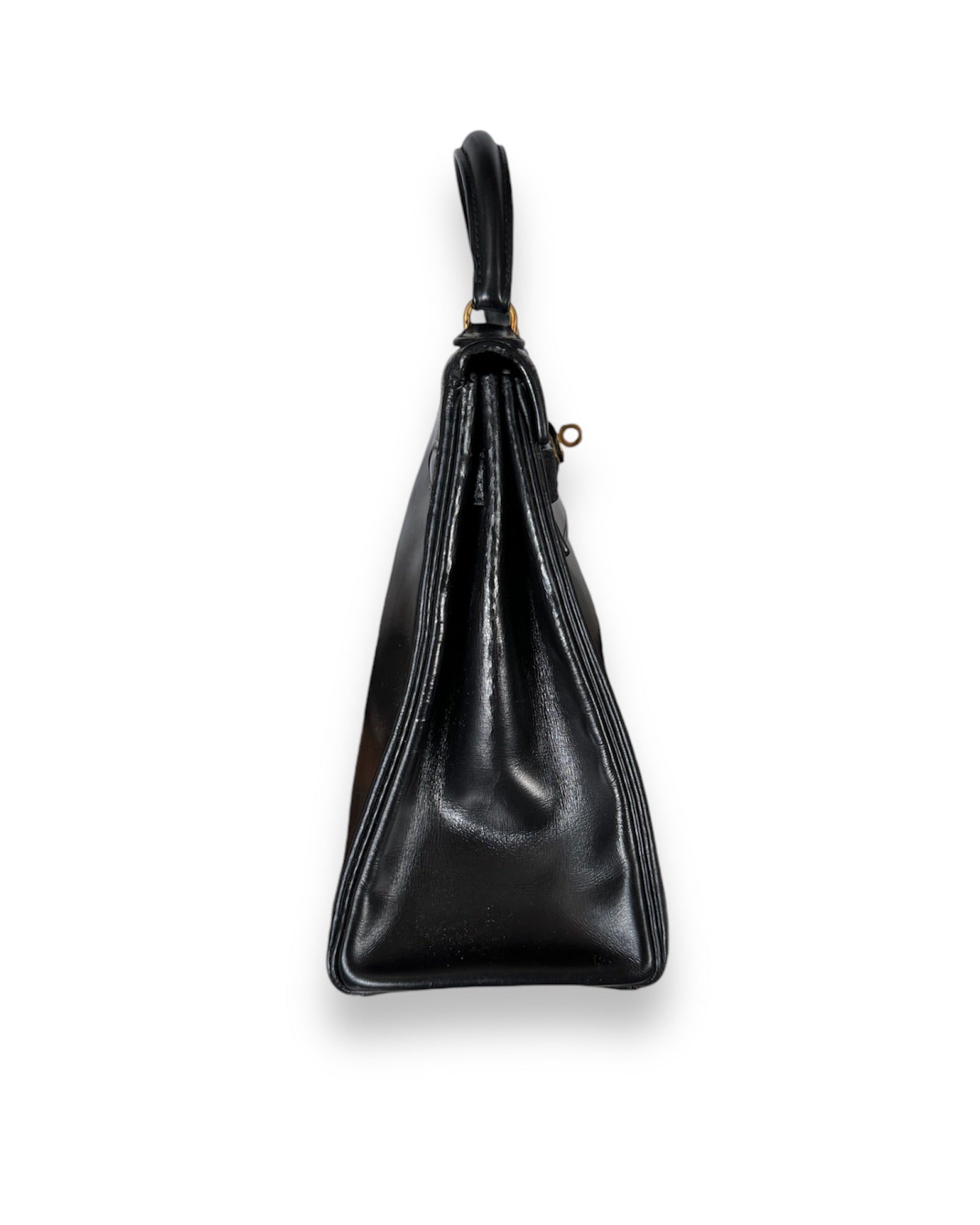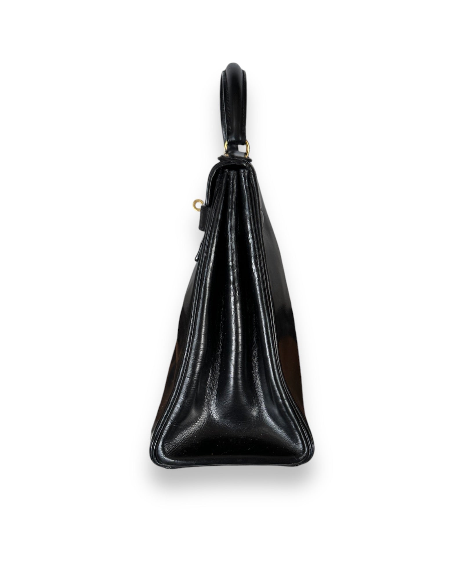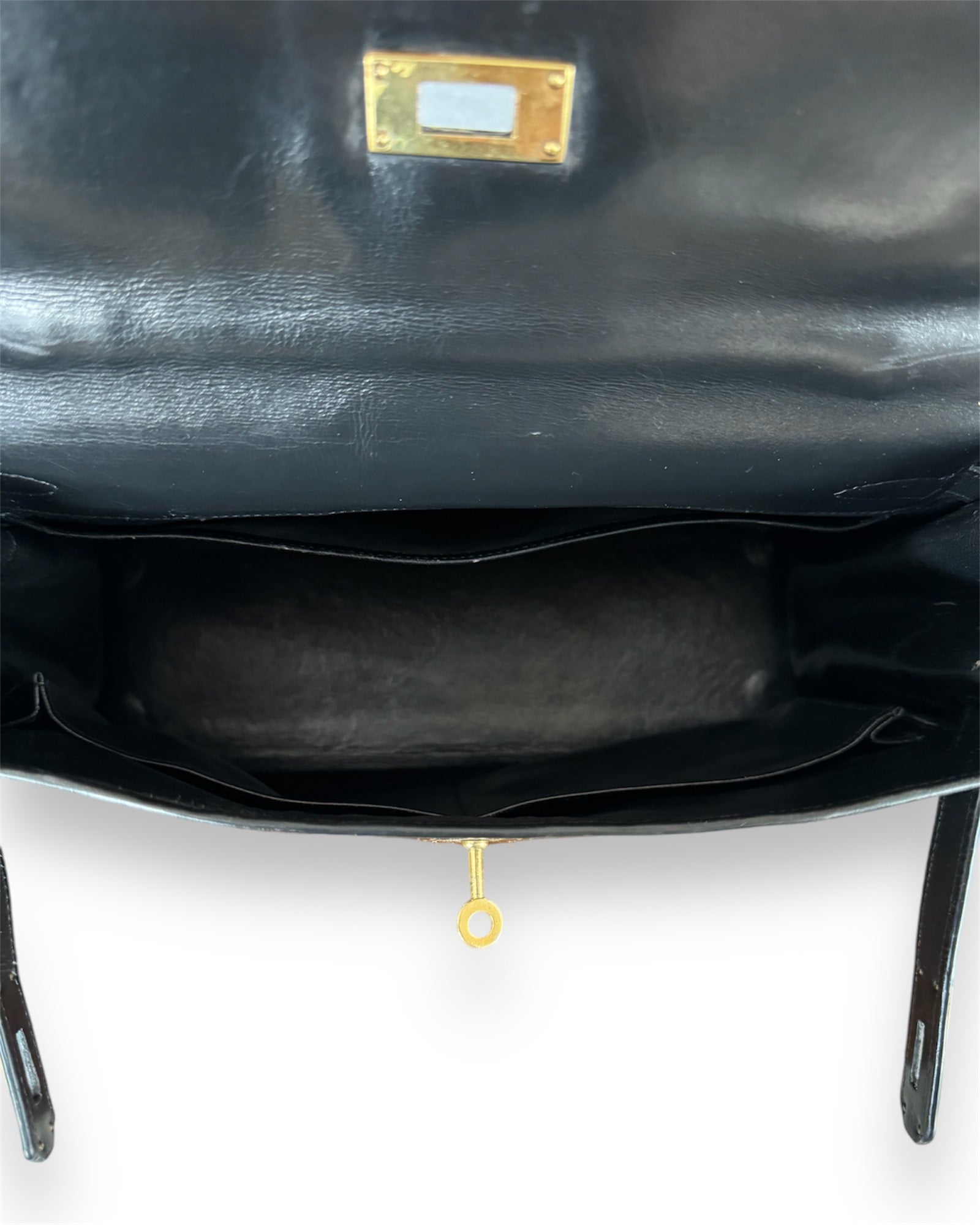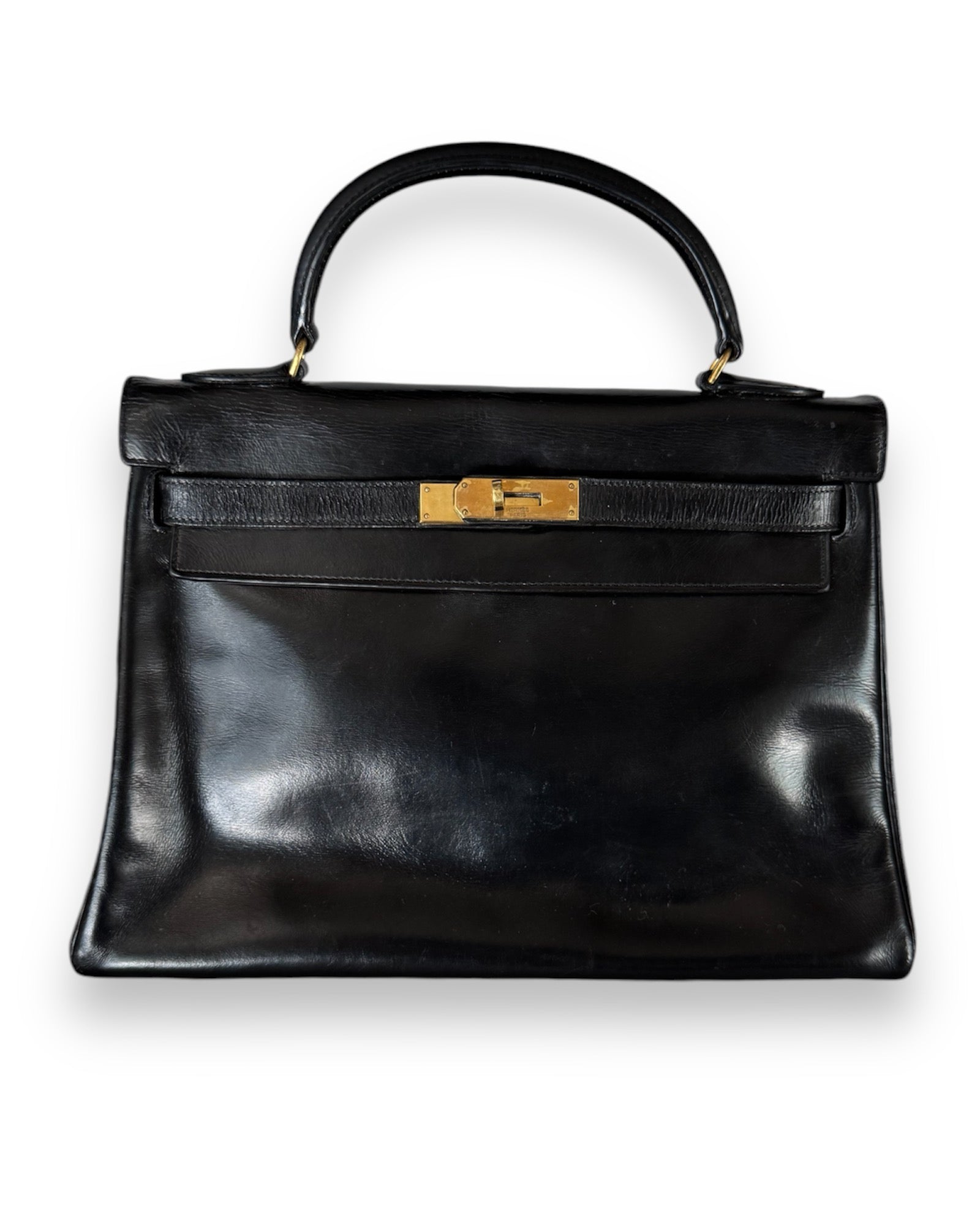 Laissez-vous séduire par ce magnifique sac Hermès Kelly 32 vintage en cuir box noir.